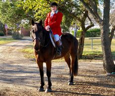 He went on our Opening Meet and led third field on his first fox hunt ever. This is one gorgeous and super quiet nice horse!! He has hunted lightly in second field another time. Taking is slow due to age, but he sure took it all in stride - obviously an old soul. He did a couple of hunts at the end of the season in the back due to his age, but once again he showed us what a great mind he has.