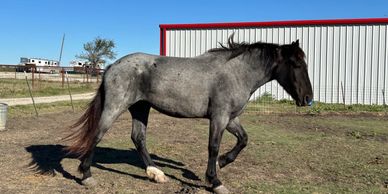 Corsair is a blue roan percheron/QH cross gelding. He has the correct confirmation and color to be a superstar. And a nice temperament to boot!